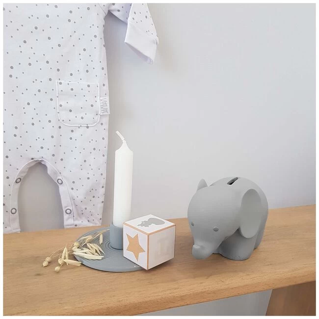 Spaarpot in de vorm van een olifant van het merk BamBam. Deze leuke spaarpot past in iedere kinderkamer. Met deze grote stoere olifant spaarpot kun je lekker veel sparen. Afmeting van de spaarpot: 17 x 9 x 10 cm.