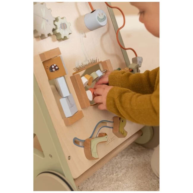 Loop, speel en leer met deze mooie houten babywalker van Little Dutch. De babywalker bevat verschillende activiteiten en daagt jouw kleintje uit om te spelen en zijn zintuigen te ontwikkelen. Er zitten maar liefst 8 activiteiten op de babywalker; zie hoe de lichtjes bewegen als je de spiegel beweegt, probeer de wieltjes rond te draaien en zoek de weg met Little Goose. Danzij zijn design en formaat is de babywalker erg geschikt om kindjes vanaf 12 maanden te helpen en te ondersteunen bij de eerste stapjes. De rubberen wielen zorgen ervoor dat je vloer niet beschadigd en de babywalker binnenshuis goed gebruikt kan worden. Geschikt voor kindjes vanaf 12 maanden. Afmeting: 32,5 x 35,5 x 49 cm.