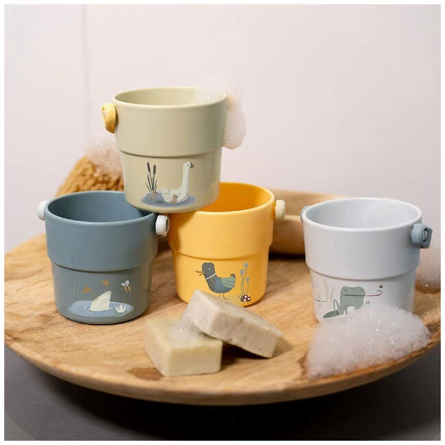 Maak het badderen nòg leuker met deze prachtige Little Dutch bad bekers! Op elke beker staat een afbeelding uit het Goose thema. En de bekers hebben zowel een matte als een gladde structuur. De achterkant van de bekers is voorzien van een cijfer print. De bad bekers hebben gaatjes in de bodem, waardoor het water er weer uit loopt. Verpakt in een full-colour windowbox. Geschikt voor kinderen vanaf 18 maanden.