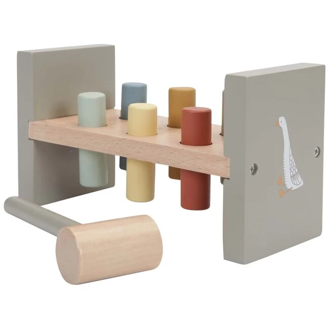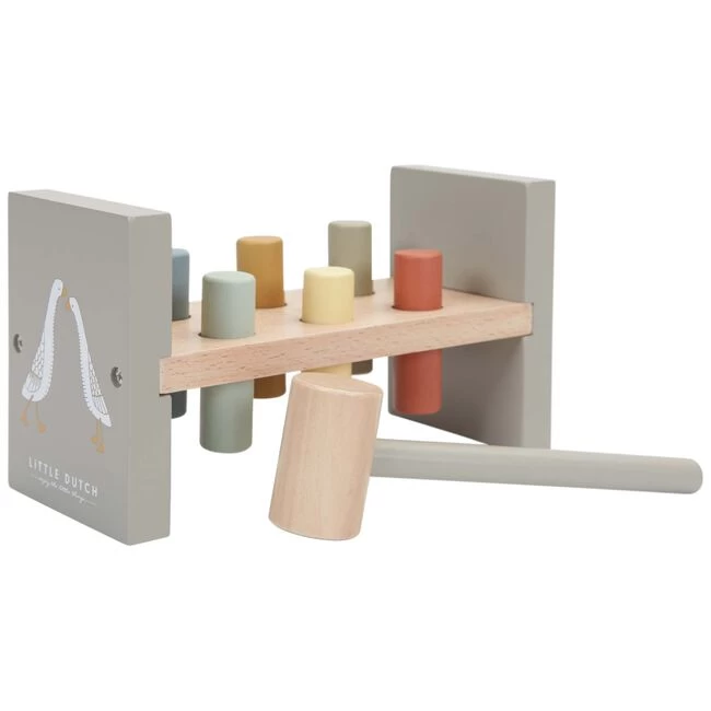 Deze vrolijke hamerbank van Little Dutch is een goede manier om de hand-oog coördinatie van je kindje te stimuleren. De stoere Little Dutch houten hamerbank is voor jongens en meisjes leuk om mee te spelen en behoort tot de serie kleine gans. Je kindje kan de staafjes een voor een met de hamer dieper in dit leuke hamerbankje slaan. Met 6 gekleurde staafjes is dit een zeer goede oefening voor de motoriek van je kindje. Zijn alle staafjes erin geslagen? Draai het bankje om en ze kunnen weer opnieuw beginnen. Hier zijn ze wel even zoet mee! Afmeting: 22 x 13 x 9 cm. Geschikt voor kinderen vanaf 12 maanden.