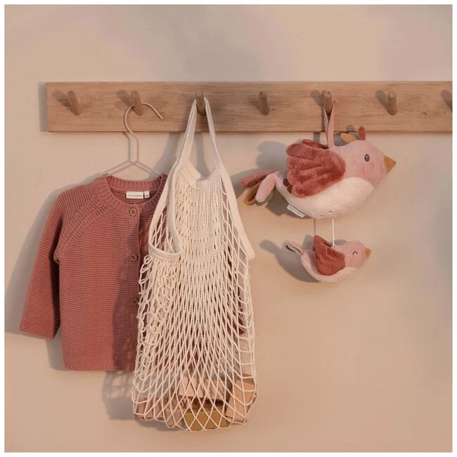 Kalmeer maar, kleintje. Deze speelse muziekdoos is een ideaal kraamcadeau. Het biedt een helpende hand bij het creëren van een fijne bedtijdroutine. Trek het roze vogeltje naar beneden en er begint een rustgevend slaapliedje te spelen. Dit geruststellende geluid brengt een vermoeide baby in slaap. Boven de wieg wordt deze muziekdoos bovendien een echte eyecatcher. Vanaf de geboorte. Geadviseerd wordt om dit muziekdoosje alleen met de hand te wassen.