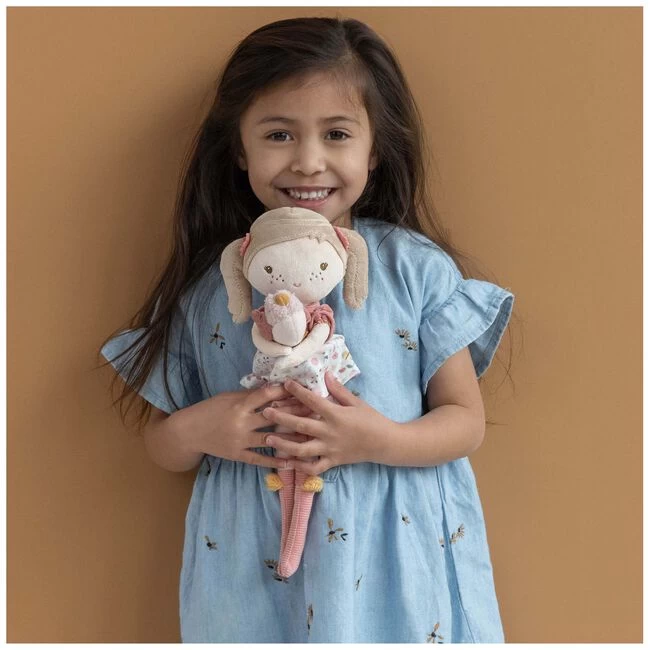 Hi! Ik ben Little Dutch pop Anna en wordt graag je nieuwe beste vriendinnetje. Met mijn knuffel vogeltje in mijn ene hand en jou in mijn andere hand, kunnen wij alles aan. Samen kunnen wij heerlijk knuffelen en spelen! Popje Anna is heerlijk zacht. Afmetingen van pop Anna is 7 x 16,8 x 20,7 cm en geschikt vanaf de geboorte.
