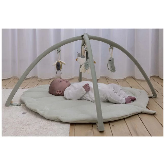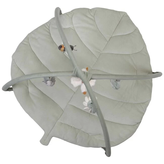 Dit mooie zachte speelkleed van Little Dutch in de vorm van een blad is het ideale speelkleed voor jouw kleintje. De vrolijke speeltjes uit het thema Little Goose zitten bevestigd aan de speelboog. De speeltjes stimuleren jouw kindje om te voelen en te ontdekken. De speeltes kunnen los gehaald worden en bijvoorbeeld gebruikt worden in de kinderwagen. Elk speeltje stimuleert op een andere manier. De vleugels van Little Goose maken een krakend geluid, er zit een spiegeltje aan de slak, de kikker piept en de bloem rammelt. Geschikt voor kindjes van 0-6 maanden. Afmeting: 91 x 99 x 49 cm.