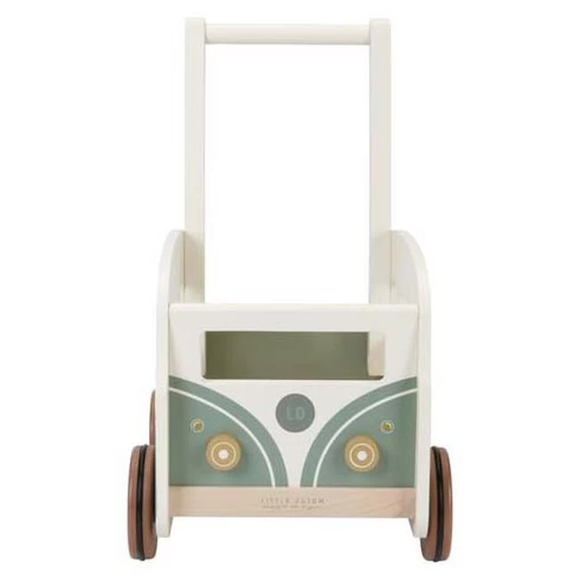 Samen met je kleintje op avontuur door de woonkamer met deze Vintage loopwagen. Stap voor stap leer je lopen en deze loopwagen helpt je daarbij. Dus start je motor en stel je voor dat je de bestuurder van dit super coole busje bent. De houten loopwagen is niet alleen een hulpmiddel om je beginnende wandelaar te zien opbloeien. Het tijdloze design van een vintage surfbusje is ook de perfecte speelgoedkist voor je baby. Je kleintje kan speelgoed opbergen voor fantasierijk speelplezier binnenshuis of meenemen op wandelavonturen! Goed voor de ontwikkeling van balans, coördinatie en motoriek. En dankzij de rubberen strips hoef je je geen zorgen te maken over je vloer als je kind door de kamer aan het cruisen is. Gemaakt van hout en geschikt voor kinderen vanaf 12 maanden.