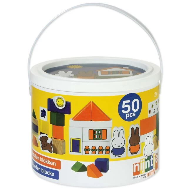 Met deze vrolijke, houten blokken van Nijntje leren kinderen op een speelse manier bouwen en hun motoriek te ontwikkelen. Deze blokkenton bevat 50 stevige, houten blokken met diverse vormen en figuren. De inhoud is een mix van gekleurde en blanke blokken. Met een hengsel om de ton makkelijk mee te kunnen nemen. Deze Nijntje blokkenset is geschikt vanaf 2 jaar.