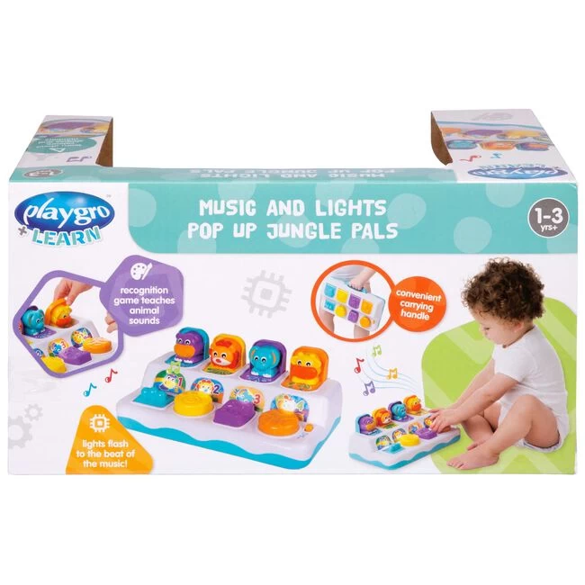Draai, klik en druk op de knoppen, kleine spruit. Wanneer je de juiste combinatie maakt, komen de dieren (nijlpaard, leeuw, olifant en koe) tevoorschijn met licht en geluid! De twee speelwijzen stimuleren de cognitieve ontwikkeling van je kleine spruit. Je baby drukt op de knoppen om de geluiden van dieren te horen. Dat stimuleert de oorzaak-gevolgrelatie en zijn fijne motoriek. Vervolgens, bij het tweede spel, leert je kindje probleemoplossend denken, door te raden welk diertje welk geluid maakt. Deze Pop-Up boerderijdieren van Jerry Class werkt op 3 AA-batterijen (inbegrepen). Geschikt vanaf de geboorte.
