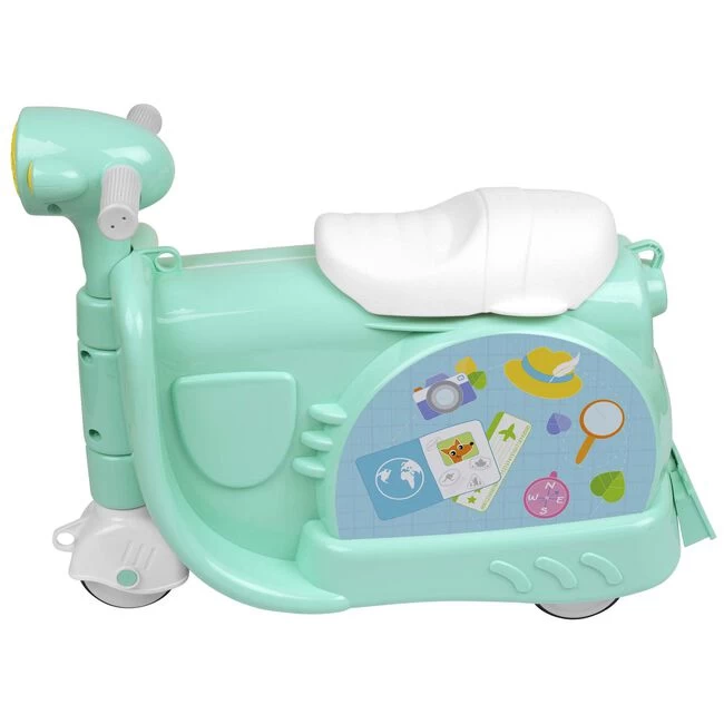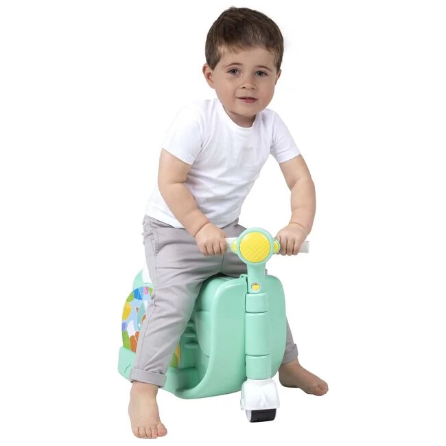 Deze reiskoffer brengt het beste van plezier en functionaliteit samen. Dit prachtige meerijd Vespa ontwerp is voorzien van een voorgevormde zitting, makkelijk vast te grijpen stuur, drie rubberen wielen voor minder geluid op de vloer en een handige afneembare draag/trekband met verstelbare gesp. Wanneer de riem correct aan de voorkant van de koffer wordt bevestigd, kan deze worden gebruikt om een kind tot 5jaar mee te trekken, in de meerijdmodus. Wanneer u uw bestemming bereikt, opent de koffer op scharnieren en onthult een royale opslagcapaciteit van 0,3m³ voor uw peuters benodigdheden, compleet met handige elastische riemen binnenin om de inhoud veilig te houden. Van wachtrijen op het vliegveld tot logeren bij grootouders, deze vespa reiskoffer verandert de reisbeleving van saai naar geweldig!