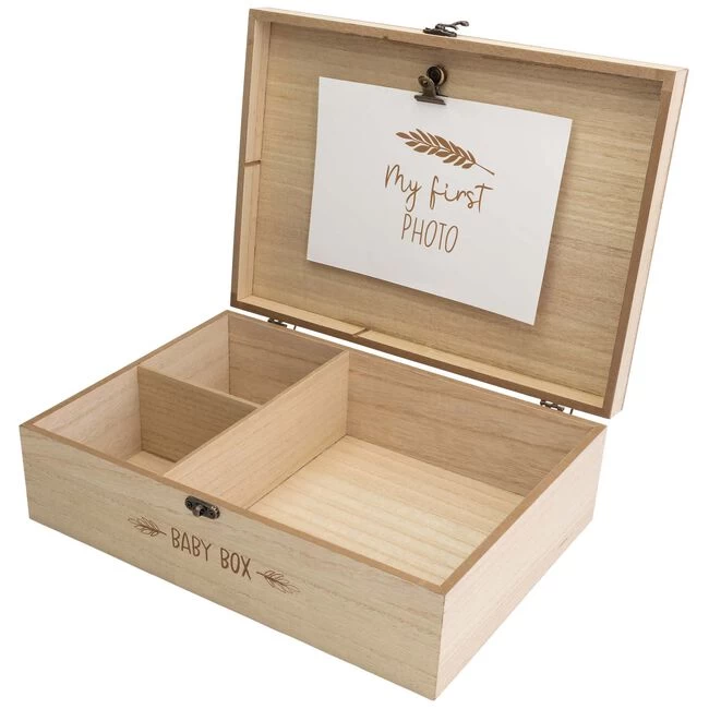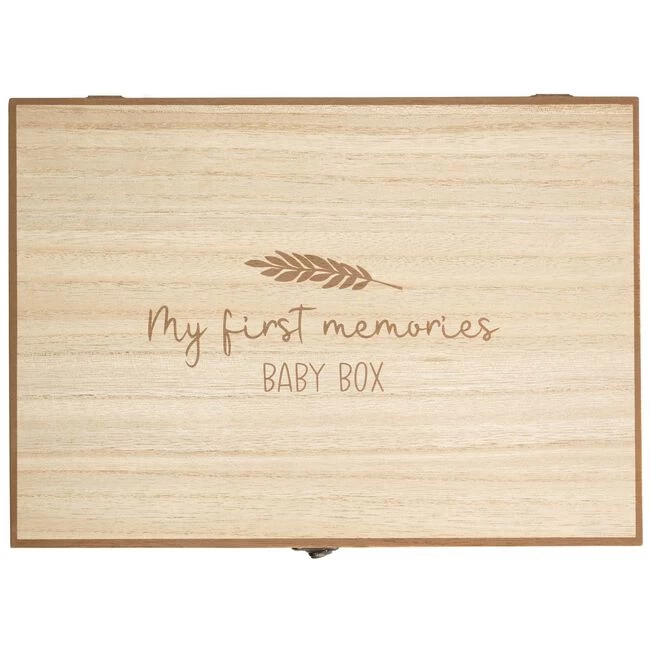 Deze leuke houten bewaardoos van Prenatal is perfect om alle eerste babyspulletjes in te bewaren. De houten bewaardoos heeft een leuke tekst op de buitenkant en handige vakjes aan de binnenkant. Leuk als babyshower- of kraamcadeau. Afmetingen: 29,5 x 21 x 9,2 cm (lxbxh).