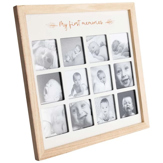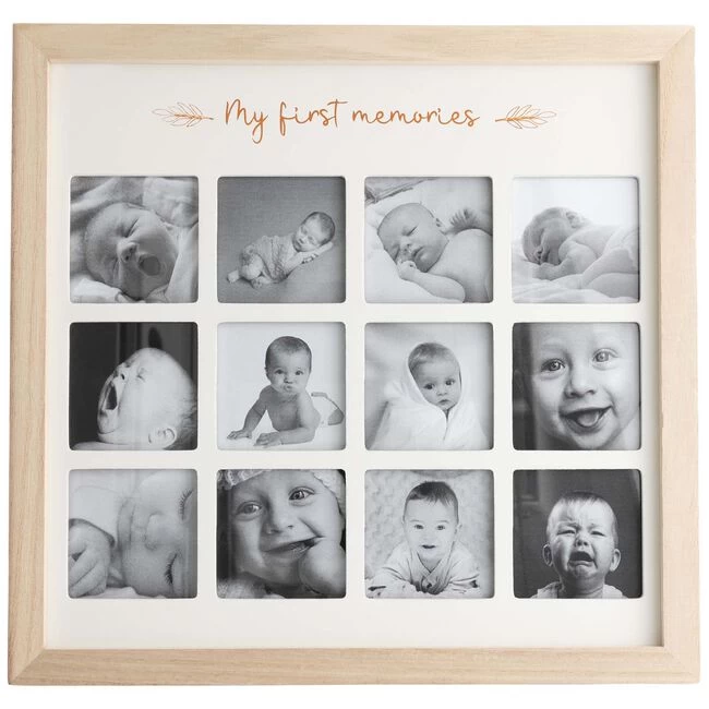 Deze leuke houten fotolijst van Prenatal is perfect om foto’s van jouw kindjes aller eerste keer in te bewaren. De houten lijst heeft 12 kaders waar je foto’s van mooie herinneringen in kunt doen. Denk bijvoorbeeld aan de eerste keer lachen, kruipen, de eerste stapjes of voor als je kindje wat ouder is, de eerste keer zelfstandig fietsen. Deze fotolijst is er voor gemaakt om elke eerste keer, maakt niet uit van welke leeftijd, in te bewaren. Leuk als babyshower- of kraam cadeau. Afmeting 28.5 x 27.5 x 2 cm.