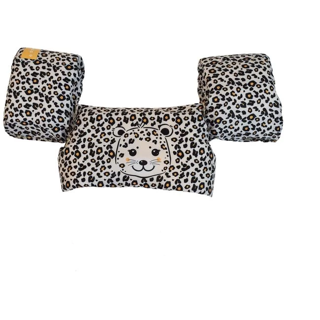 Met de Swim Essentials Puddle Jumper met panterpint geniet je kindje deze zomer helemaal veilig en volledig in stijl van het waterplezier! De puddle jumper zwembandjes worden op de rug bevestigd en zijn niet door je kindje zelf los te maken. Hierdoor weet je zeker dat je kindje veilig is in het water. Het draagvermogen van de puddle jumper ligt op 15 tot en met 30 kg, wat ongeveer gelijk staat aan een leeftijd van 2 tot 6 jaar oud. De puddle jumper bestaat uit één stuk die bevestigd wordt aan beide armen en de borst met een gesp op de rug, zodat het geheel blijft zitten tijdens het zwemmen. De binnenkant is gemaakt van foam en zorgt voor voldoende bewegingsruimte.