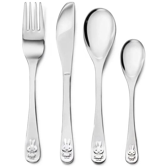 Eten wordt nog leuker met dit Zilverstad kindercouvert met het konijn nijntje erop. De bestekset zit in een luxe kleurrijke cadeauverpakking. Het bestekje kan gegraveerd worden bij een juwelier, wat het een persoonlijk kraam- of verjaardagscadeau maakt. Afmetingen: kindervork: 170 mm, kindermesje: 179 mm, kinderlepel: 170 mm en paplepel: 135 mm. Gemaakt van 18/10 RVS met glanzende afwerking. Het bestekje kan in de vaatwasser.
