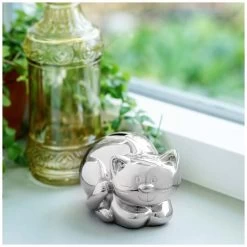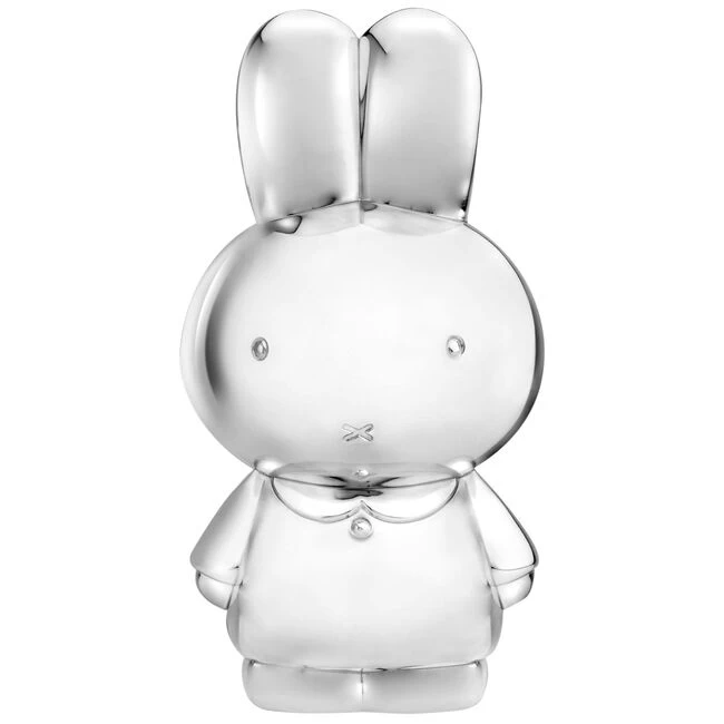 Mooie, glanzende spaarpot in de vorm van het beroemde konijn nijntje. De spaarpot kan gegraveerd worden bij een juwelier, wat het een persoonlijk geschenk maakt. Deze nijntje spaarpot is in zilver kleur, poetsen is overbodig. Afmetingen: 6,9 x 7,8 x 14,8 cm. In kleurrijke geschenkverpakking.